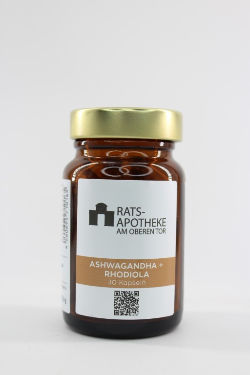 NAHRUNGSERGÄNZUNGSMITTEL mit Ashwagandha und Rhodiola Rosea für stressgeplagte Menschen jeden Alters.