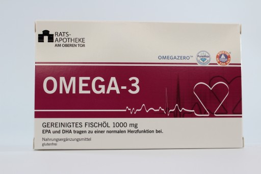 Nahrungsergänzungsmittel mit Omega-3-Fettsäuren (EPA und DHA), die aus gereinigtem Fischöl gewonnen werden.
